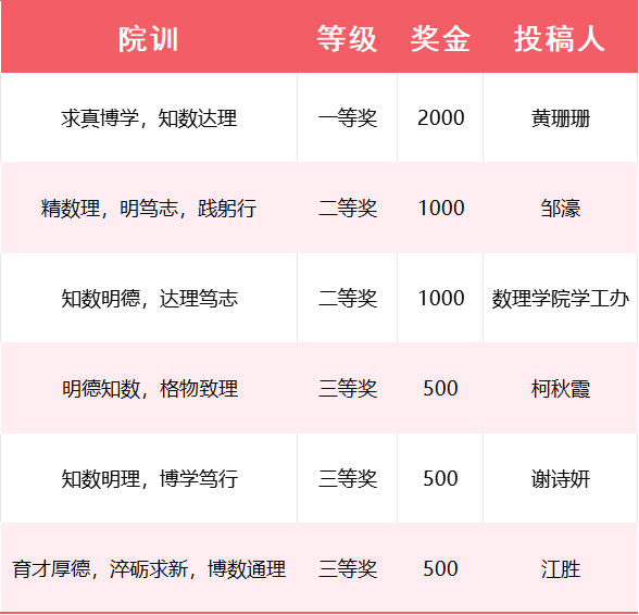 此次评选确定的院训,将成为学院文化的重要组成部分和精神引领。希望全院师生以此为契机,深刻领会院训内涵,积极践行院训精神,凝心聚力,共同推动数理学院各项事业高质量发展。